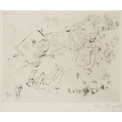 MARC CHAGALL (FRENCH/RUSSIAN, 1887-1985) "LA BRITCHKA S'EST RENVERSÉE"PLATE XIV FROM "LES AMES MORTES"