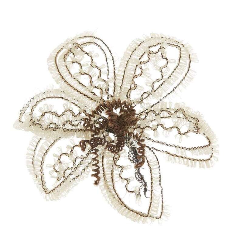 Each worked with variously colored hair into small floral sprigs or blossoms.