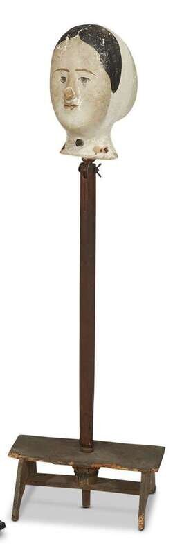 Painted Papier-mâché milliner's mannequin on a wooden stand Circa 1840