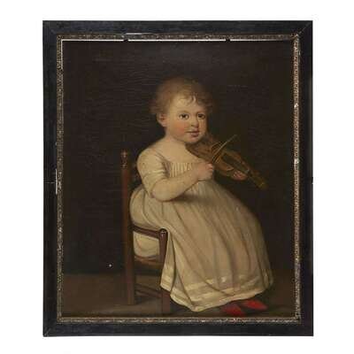 Continental School 19th century Portrait of a seated child with a violin