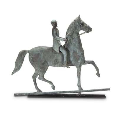 Full-bodied copper and zinc Hambletonian horse and rider weathervane 19th century