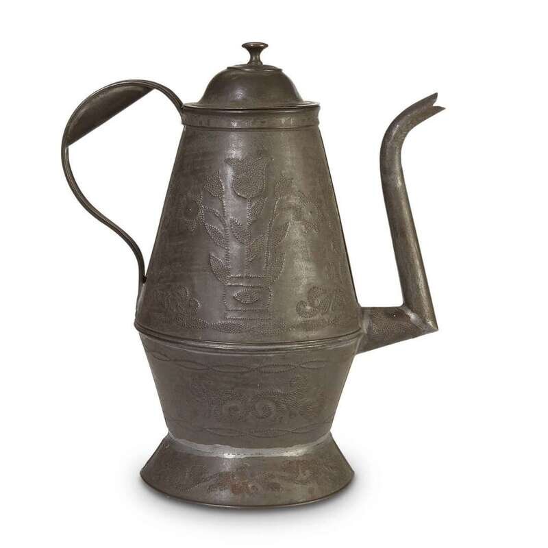 Punch-decorated tinware coffee pot Pennsylvania, circa 1830