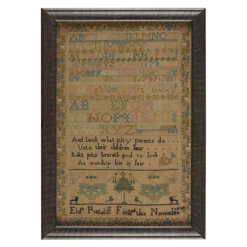 Needlework sampler "Eliz. Ratcliff," dated, "November 24, 1797"