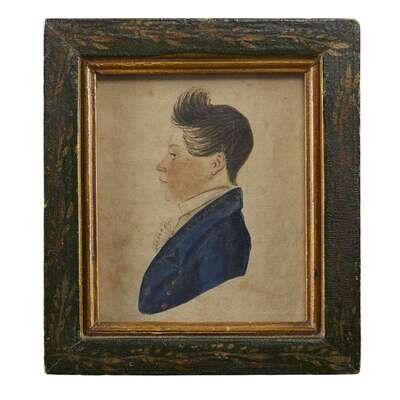 Attributed to Jacob Maentel (1763-1863) Miniature profile portrait of a young man
