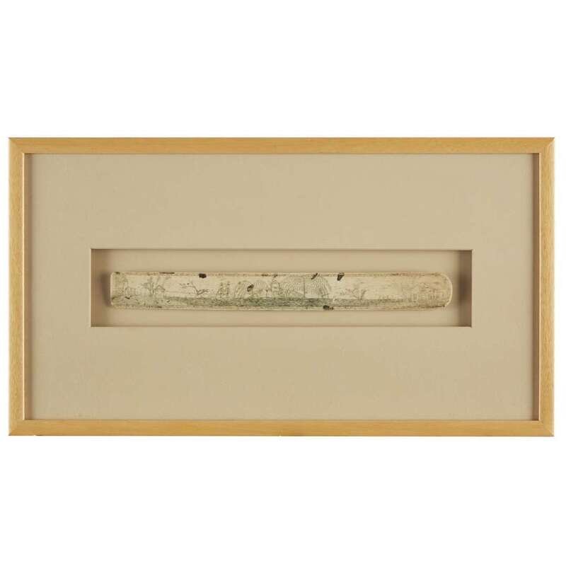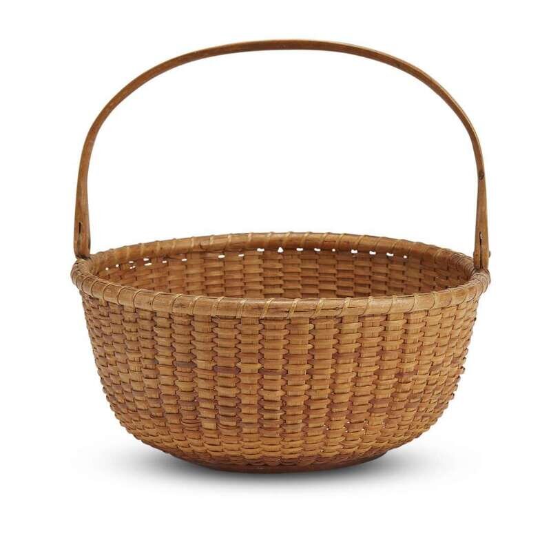 Nantucket swing-handled basket, scrimshawed busk and carved needlecase New England, 18th to the early 20th century