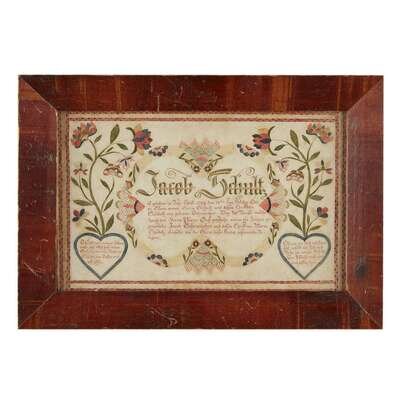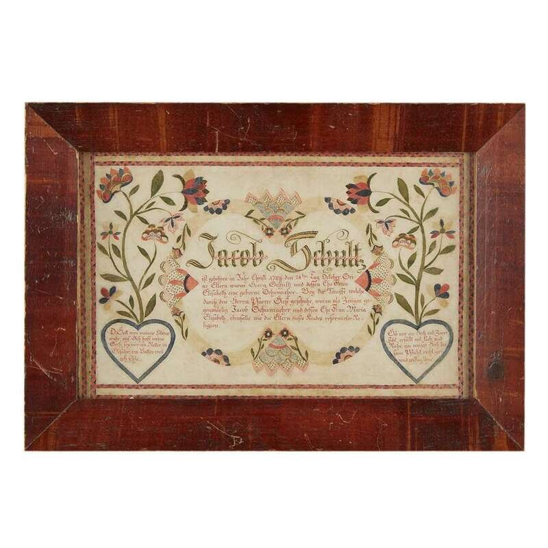 Fraktur: Birth record of Jacob Schultz (1788-1845) Loudoun County, VA