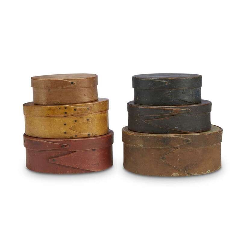 Six oval finger-seamed pantry boxes New England, 19th century