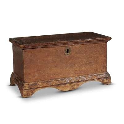 Miniature lift-lid pine and oak blanket chest New England, circa 1800