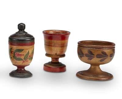 Turned, painted and decorated saffron cup with lid Attributed to Joseph Long Lehn (1798-1892), Lancaster County
