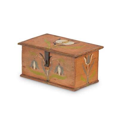 Painted and decorated miniature pine box Attributed to Jonas or Jacob Weber, Lancaster County, PA
