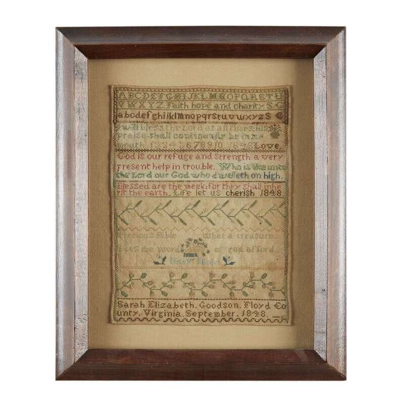 Needlework sampler "Sarah Elizabeth Goodson, Floyd County, VA, September 1848"