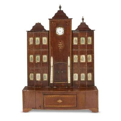 Inlaid mahogany architectural form watch hutch 19th century