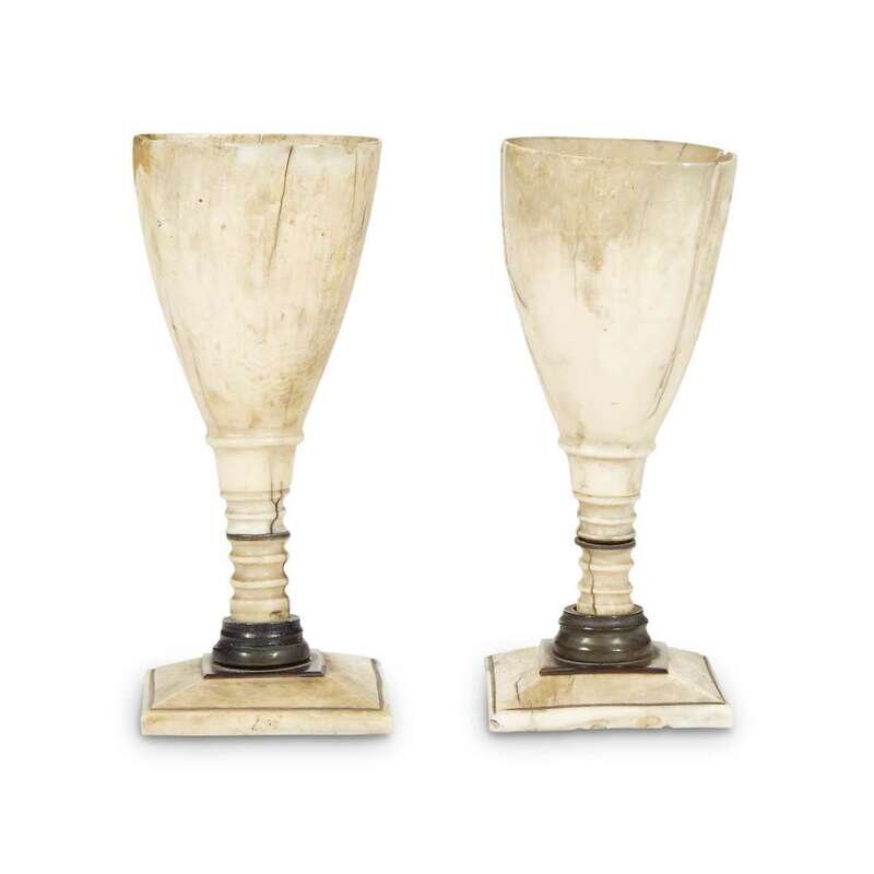Pair of whale bone and baleen goblets 19th century