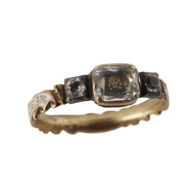 Gold and enamel mourning ring Probably Boston, MA, dated 1765