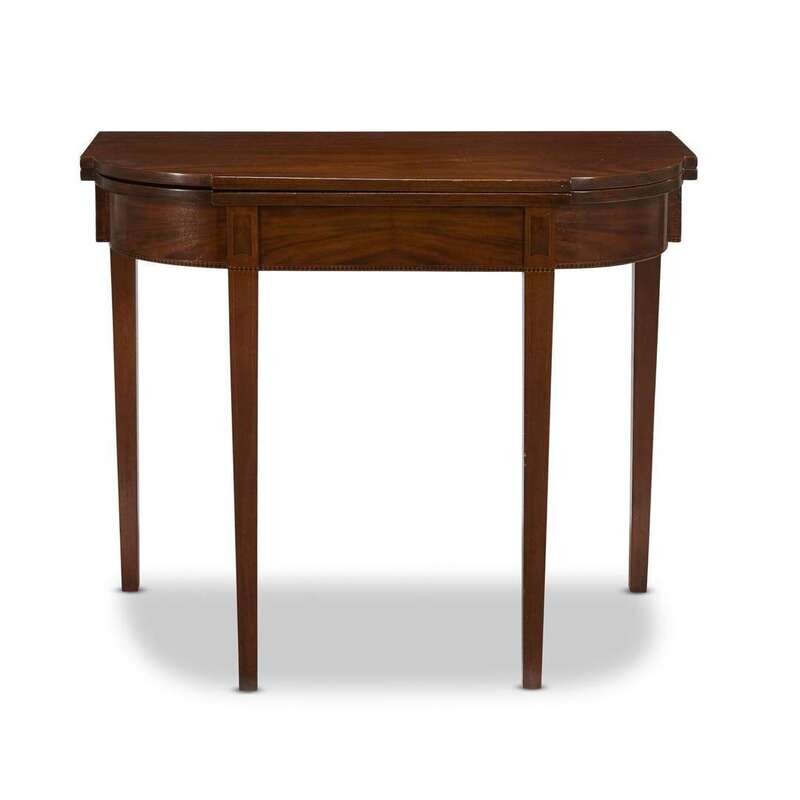 Federal inlaid mahogany card table Bearing printed paper label of Joseph Short (1771-1819), Newburyport,