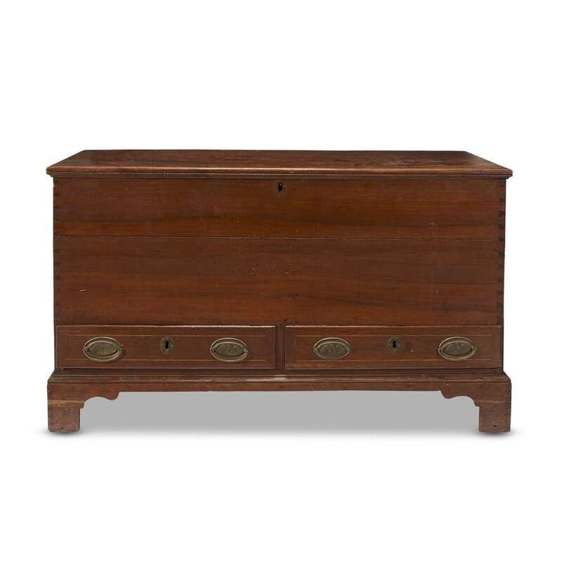 Federal inlaid walnut blanket chest with drawers Possibly Cabarrus County, NC, early 19th century