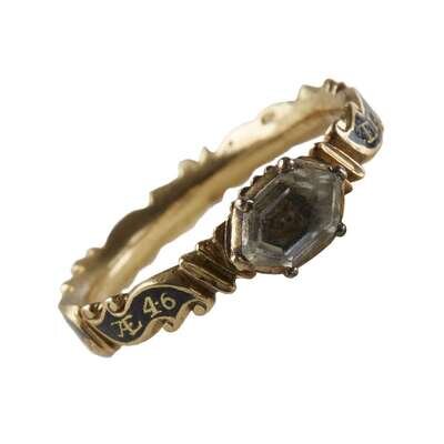 Gold and enamel mourning ring Probably England, dated 1753