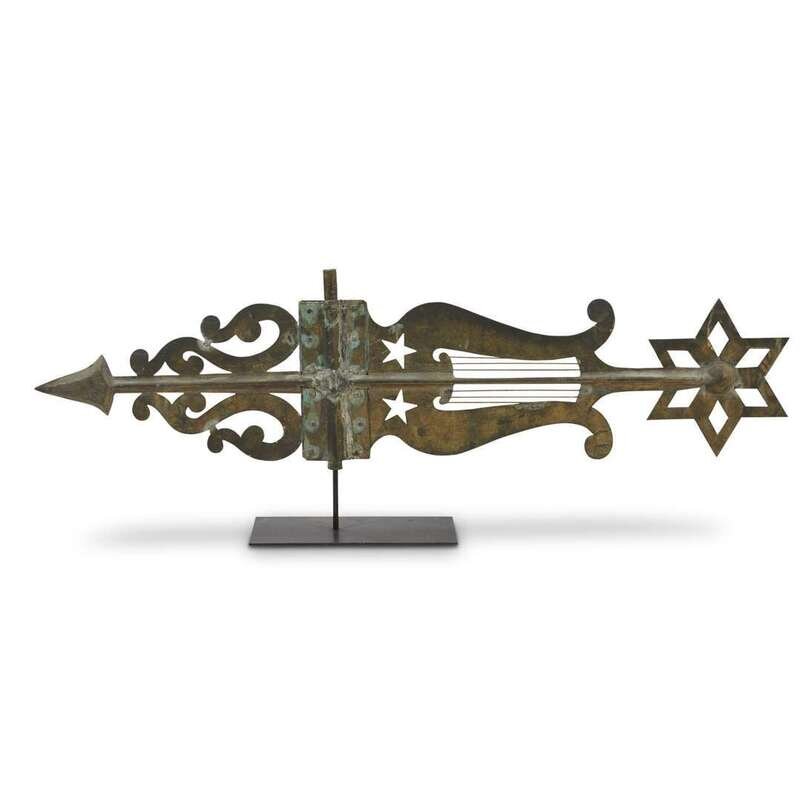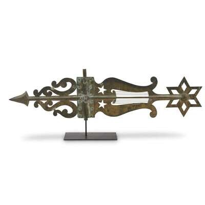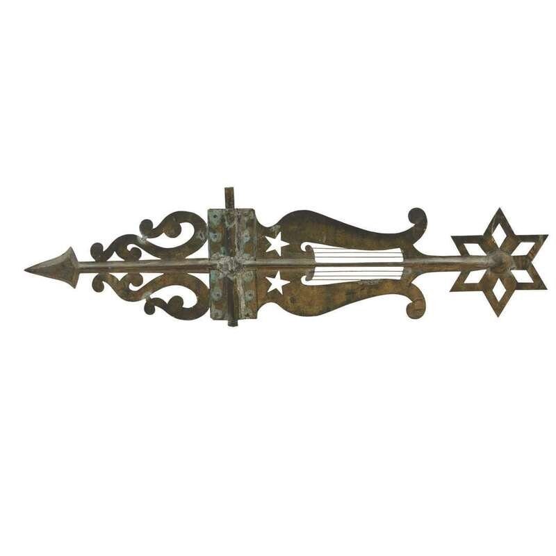 Large sheet copper and zinc lyre and star bannerette weathervane Late 19th century