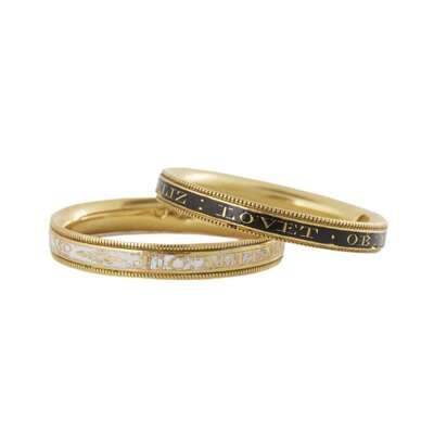 Two gold and enamel mourning band rings Probably England, dated 1785 and 1788