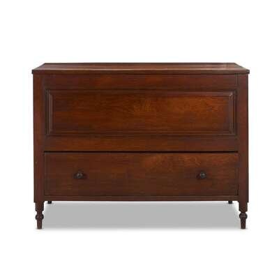 With raised panel above long drawer having turned pull, paneled sides, turned feet.