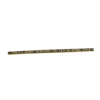 With inscription, "THOS &. HANH HOPKINS, OB: 14 & 22. JUNE. 1794," against black enamel ground, the reverse with additional inscription and possible maker's mark.