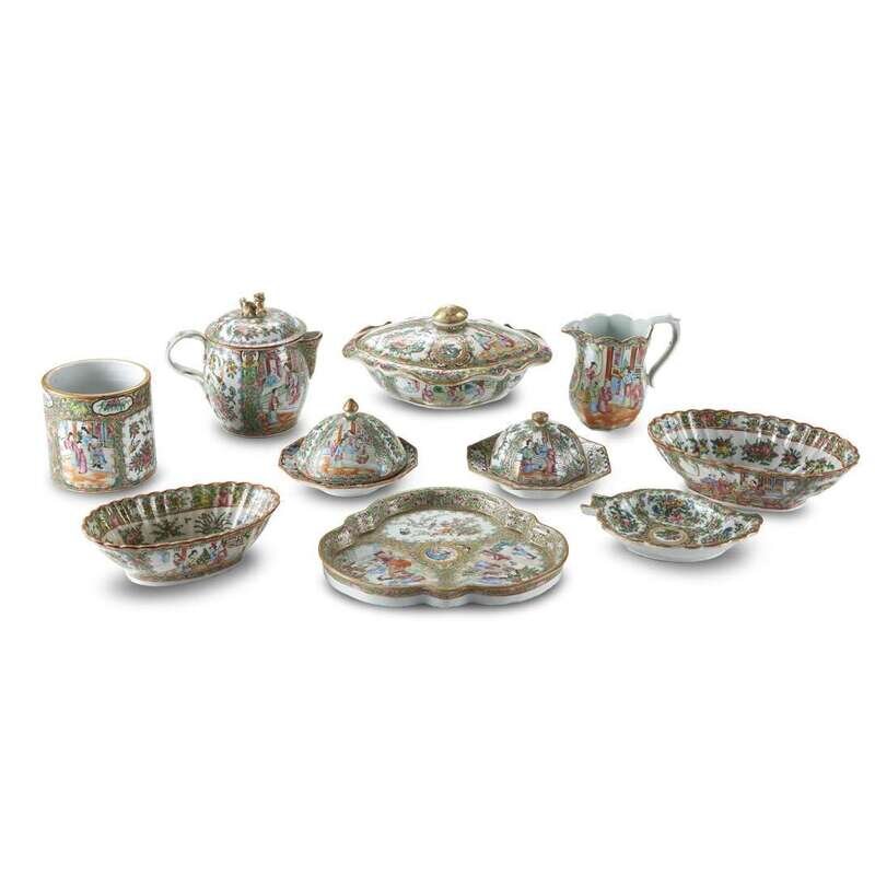 Assorted Chinese Export porcelain "Rose Medallion" and "Rose Mandarin" tablewares 19th century
