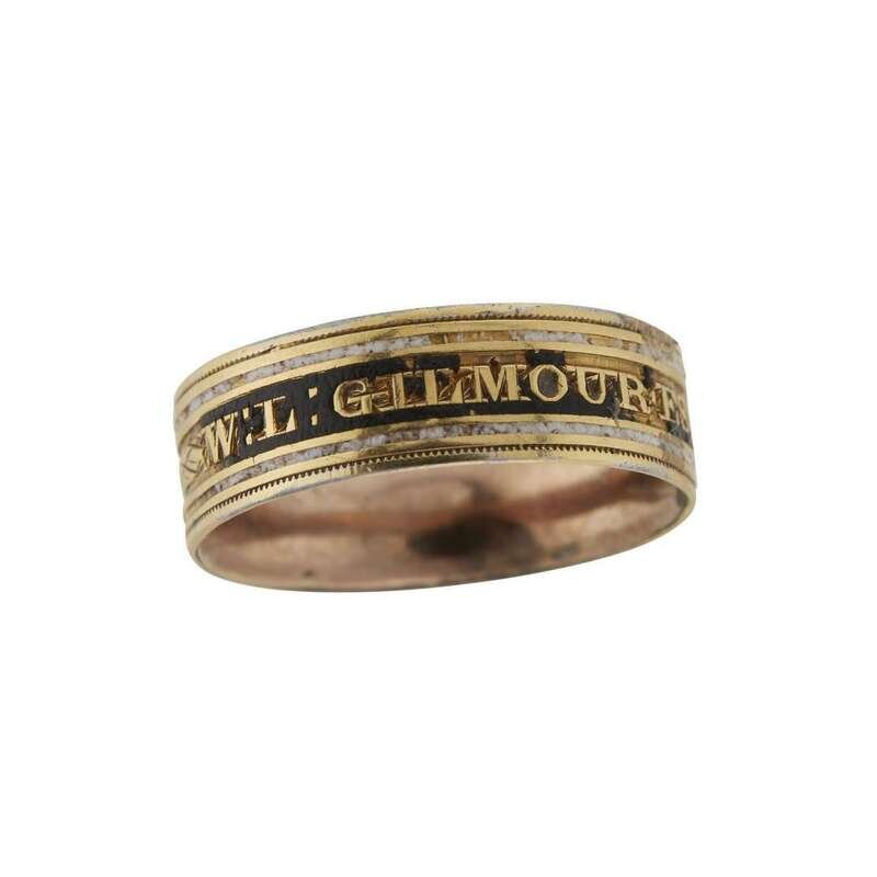 Two gold and enamel mourning band rings England or America, dated 1787 and 1807