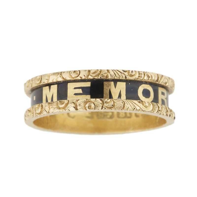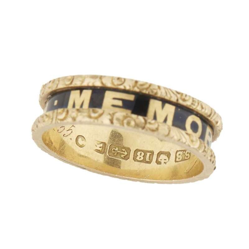 Gold and enamel mourning band ring England, dated 1845
