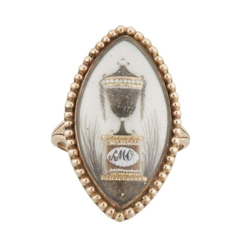 Gold, ivory, and hairwork mourning ring England or America, late 18th/early 19th century