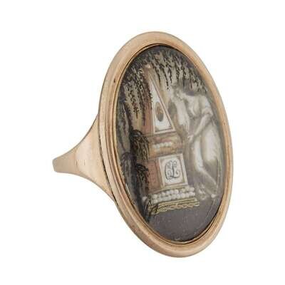 Gold, ivory and hairwork mourning ring England or America, dated 1789