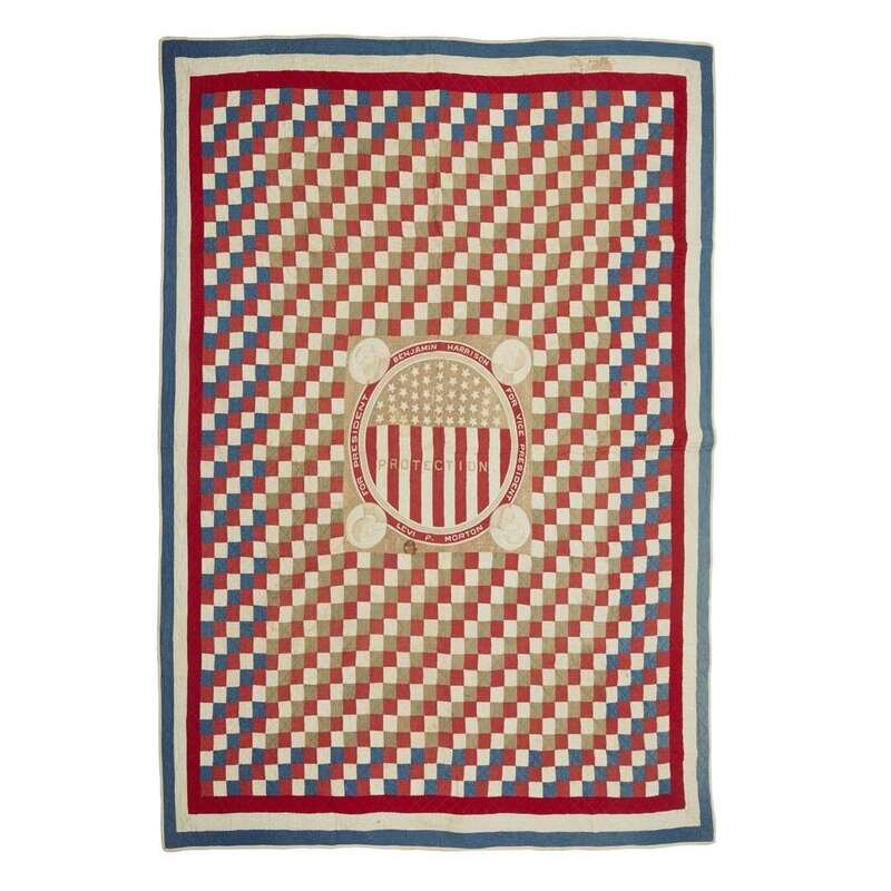 A Benjamin Harrison presidential campaign quilt circa 1880