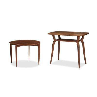 The tiered table in walnut, signed and dated: "dburnett walnut 74" The tray table with applied Fritz Hansen label.
