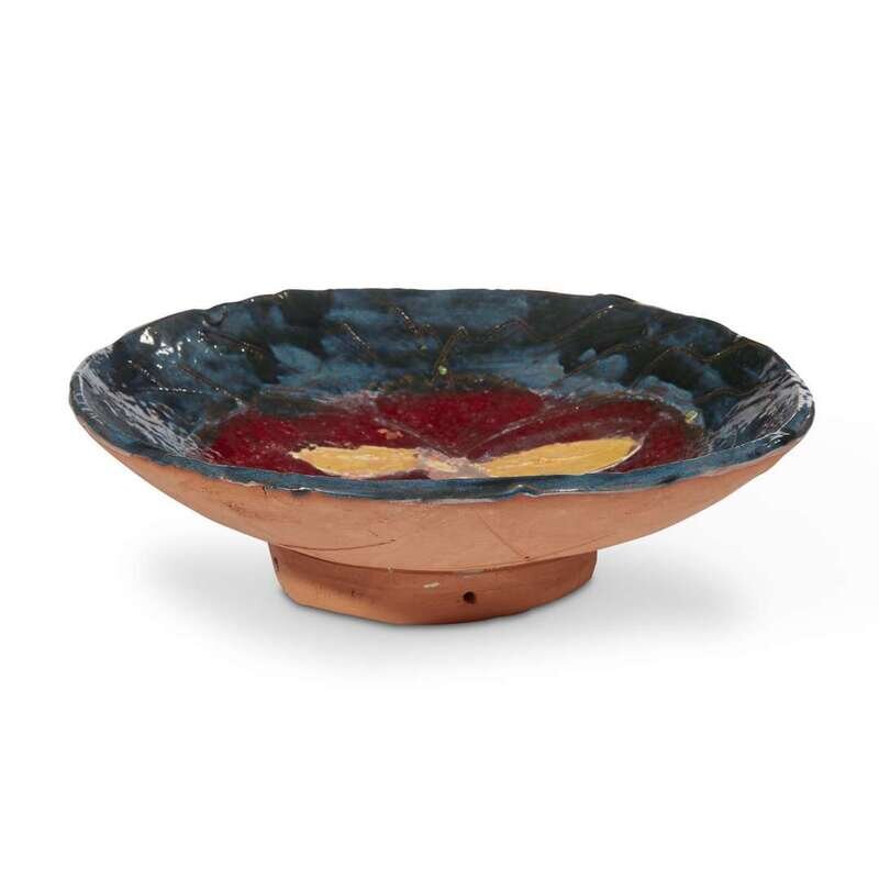 Glazed redware inlaid with porcelain Signed: "Leroy"