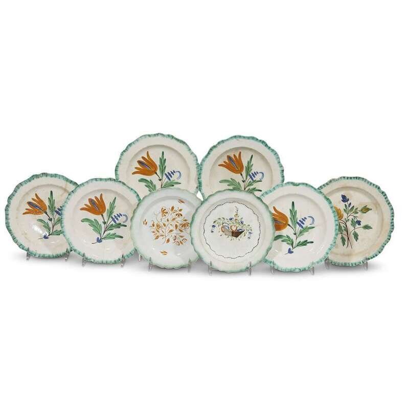 A collection of eight floral-decorated green 'feather edge' pearlware plates english, late 18th/early 19th century