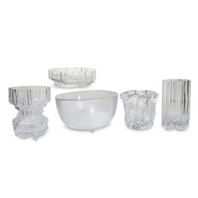 TAPIO WIRKKALA (FINNISH, 1915-1985) COLLECTION OF FIVE GLASS VESSELS, IITTALA, FINLAND, CIRCA 1960