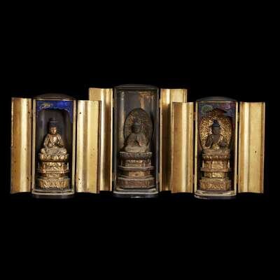 Three Japanese portable shrines, zushi Late Edo/early Meiji period