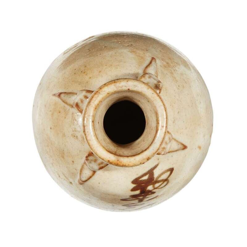 The ovoid jar with four tapered handles at the neck, inscribed, "pear blossom liquor".