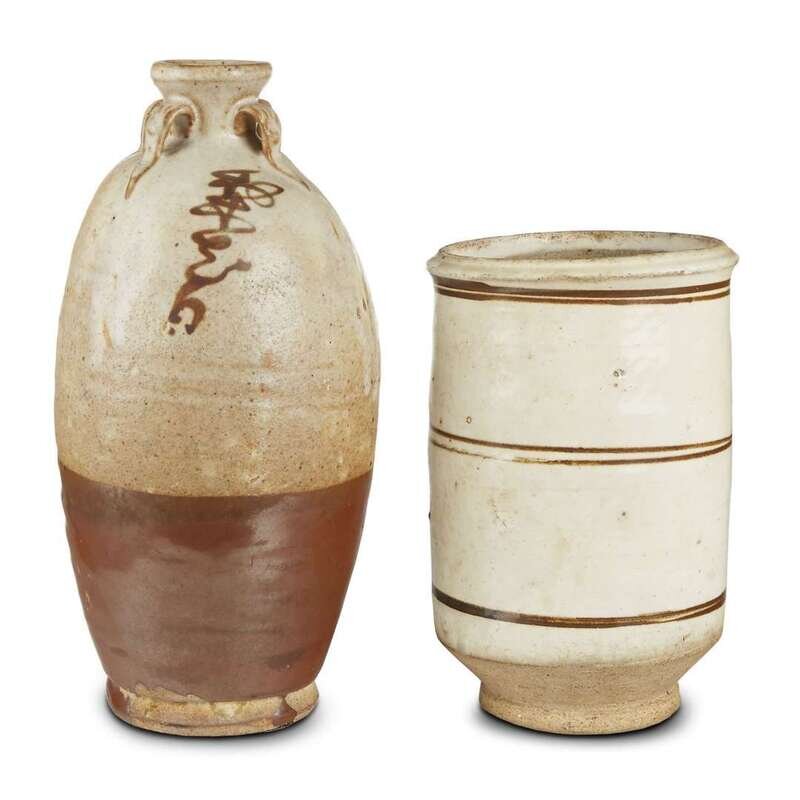 A Chinese Persimmon-glazed ovoid liquor bottle and a Cizhou cylindrical jar song-yuan dynasty