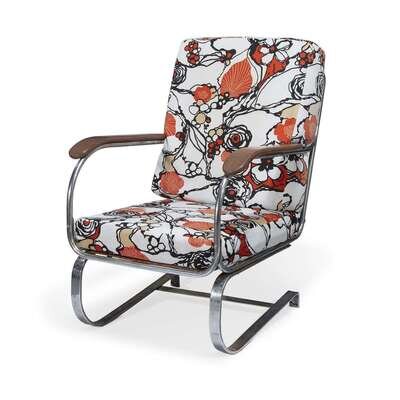 Chromed steel, upholstery Manufactuer's applied paper label: "Lloyd Manufacturing Co."