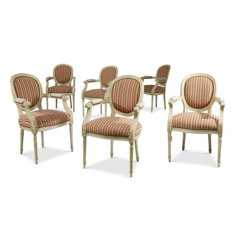 A set of six Louis XVI style white painted fauteuils 20th century