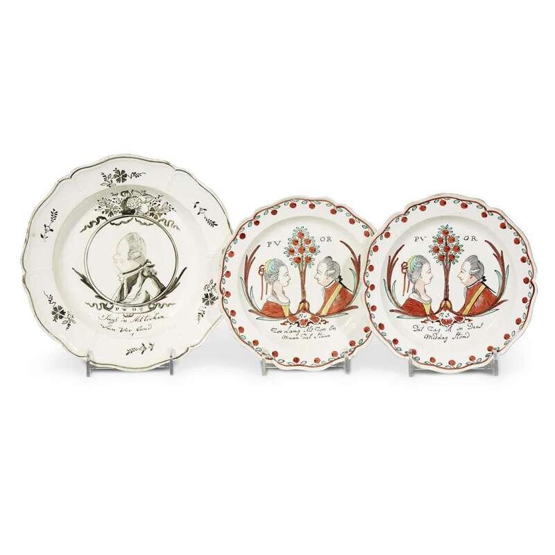 Three Dutch-decorated English creamware William of Orange plates late 18th century