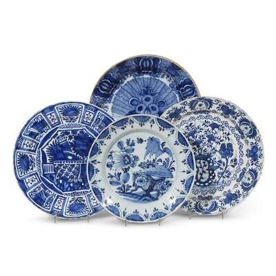 Four Dutch Delft blue and white platters late 17th/ early 18th century