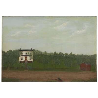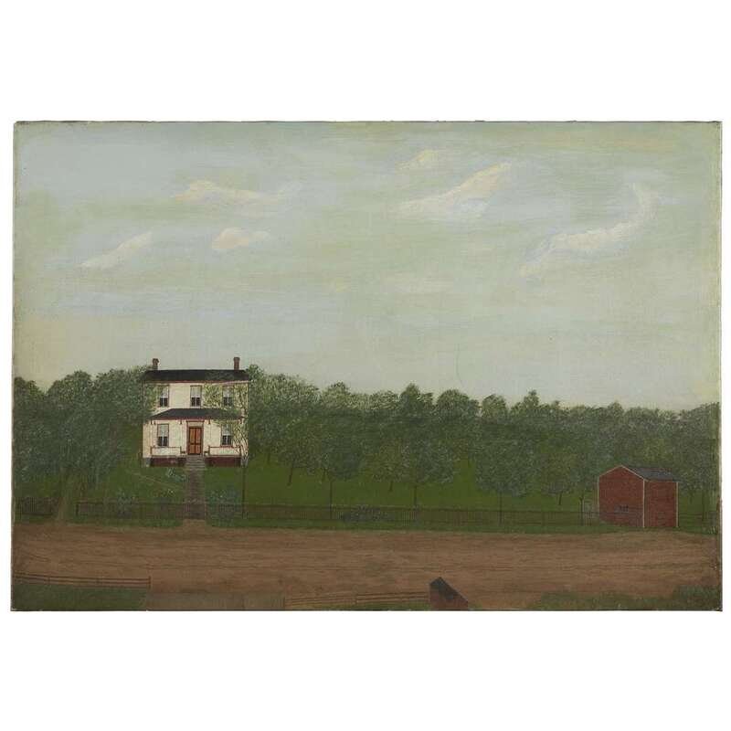 American School 19th century primitive painting of house and landscape