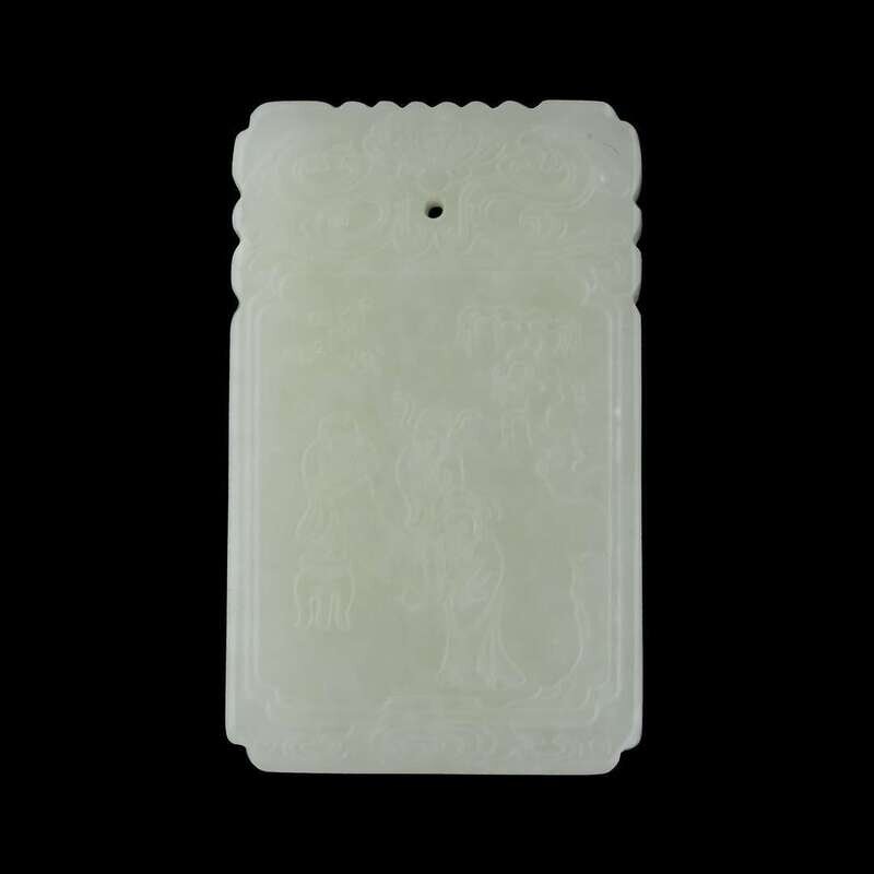 Chinese carved white jade rectangular plaque