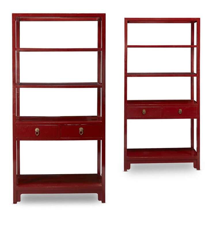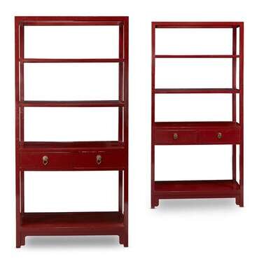 A pair of Chinese style red-lacquered bookcases Contemporary