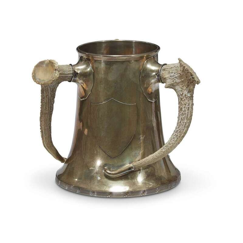 An antler-mounted sterling silver trophy cup 20th century