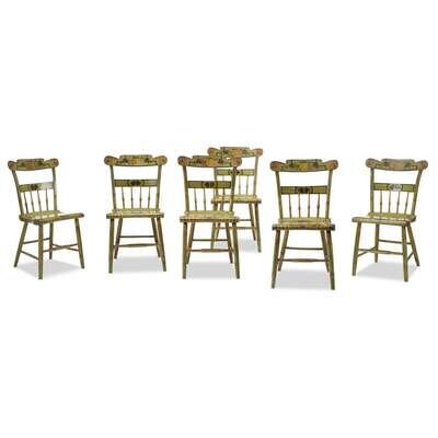 A set of six green paint-decorated side chairs probably pennsylvania, circa 1830