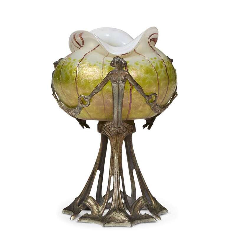 An Art Nouveau glass and patinated metal-mounted bowl probably austrian, circa 1900