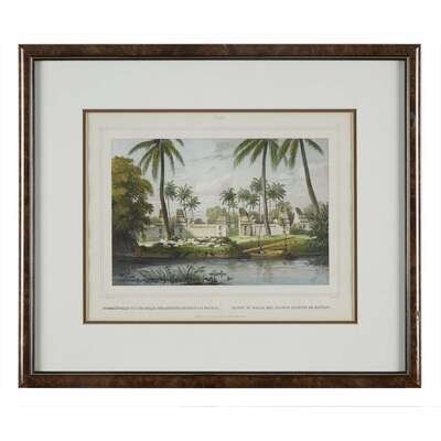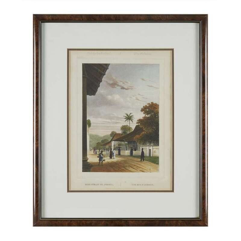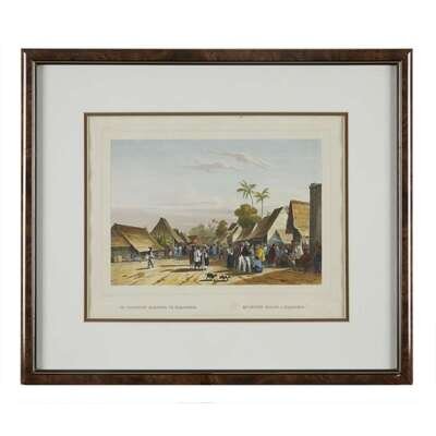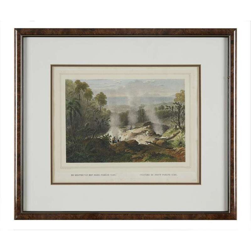 Printed by Buffa & Zonen, after drawings of the Indonesian archipelago by Dutch naval officer C. W. M. van de Velde, made when he was midshipman aboard corvet Z M Triton between 1838 and 1841. Framed, matted and glazed. Approximate sight: W/H: 14.5 in., H/W: 11.5 in.