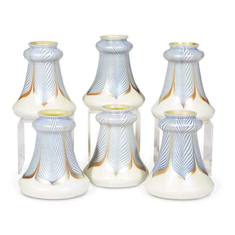Six Steuben glass "dragon loop" pattern shades early 20th century